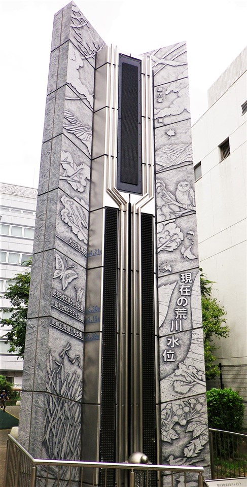 このモニュメントは、荒川の水位を示しているそうです。