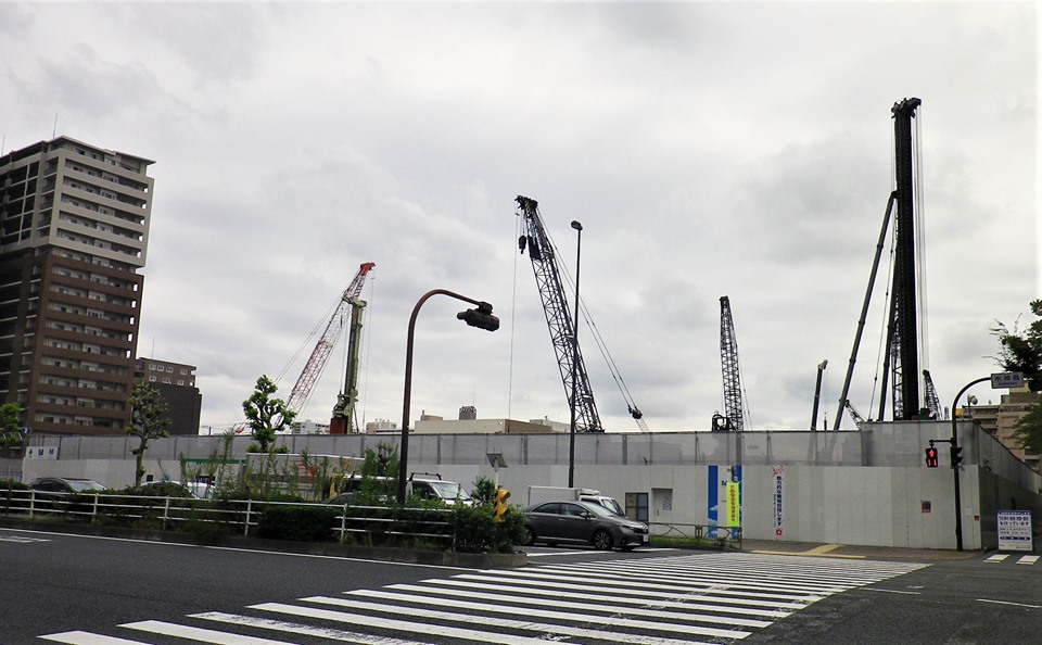 そして、京葉道路(国道14号線)の水神森に工事現場がありました。