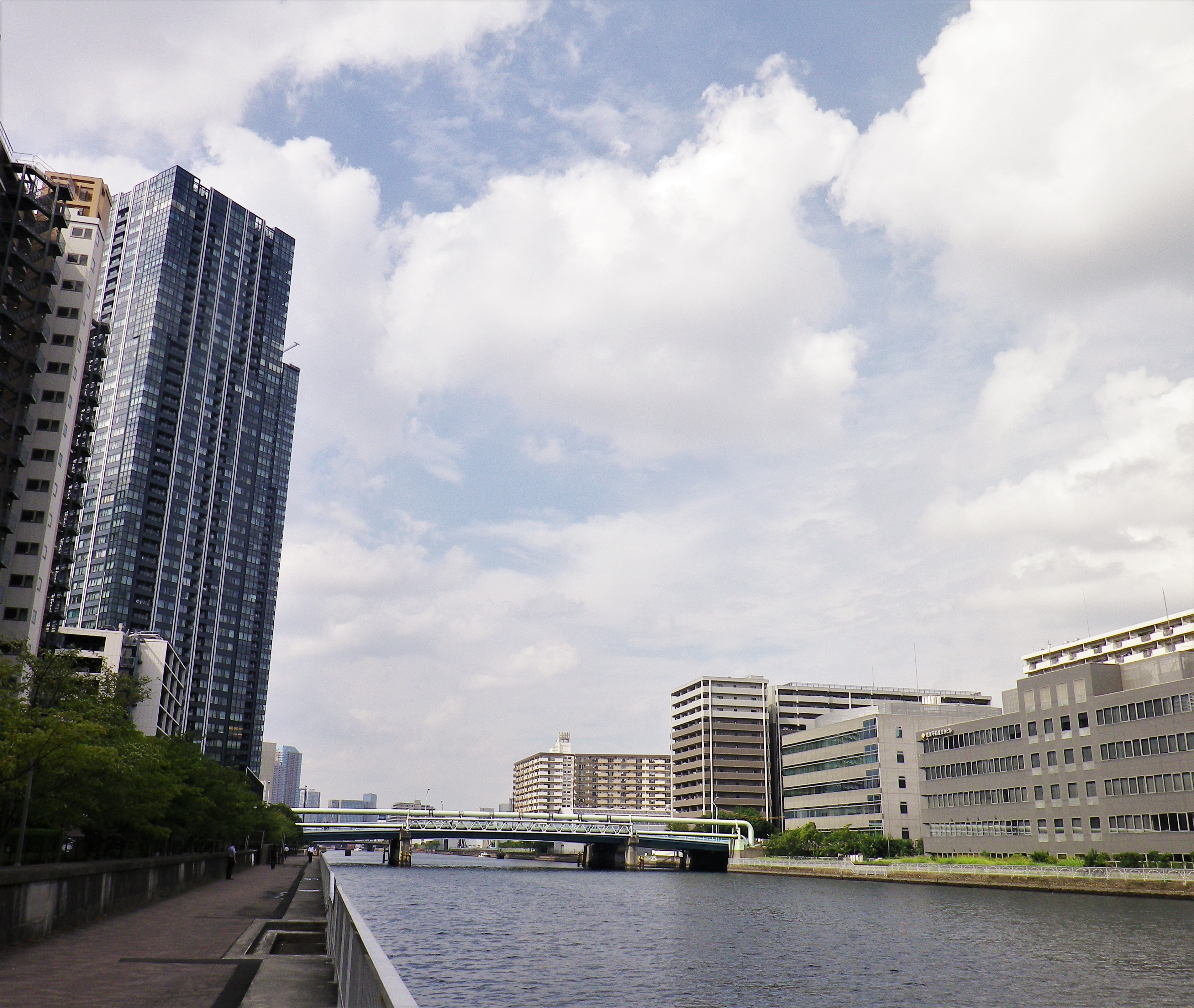 豊洲運河は、整備された遊歩道が約1.2kmに渡って伸びています。