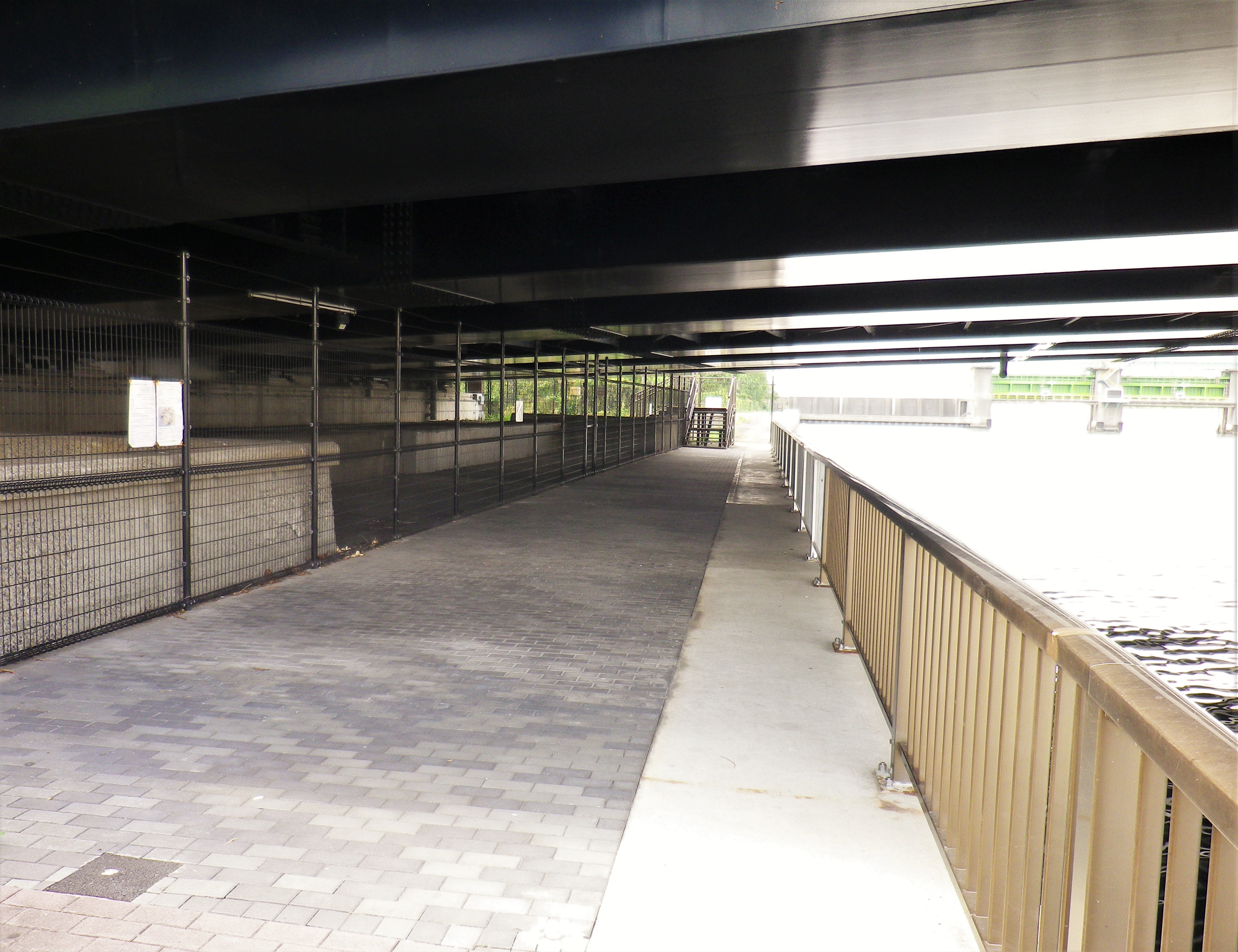 さわやかな海風を浴びながら、ゆっくりと歩いて行きますと豊洲橋の下で遊歩道は行き止まりになります。