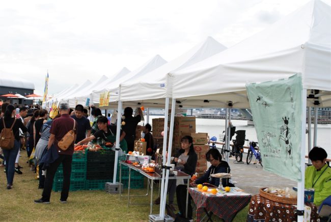 山形県、和歌山県、鹿児島県のブースでは、びっくりする価格で野菜や果物が提供されていました。また、豊洲地元の商友会や豊洲ぐるりパークのスタイルマーケットのブースもありました。