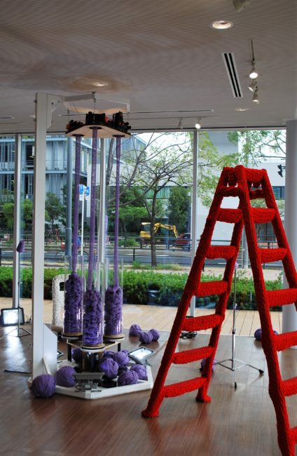 編み物をコミュニケーションメディアと捉え、街や空間に関与するインスタレーションやプロジェクトを展開。