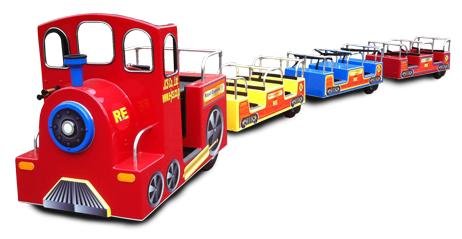 小さくても力持ち!カラフルでかわいい機関車を模したロイヤルトレインJrが豊洲まちなみ公園に登場。お子さまを乗せて展示場内を駈けめぐります。お気に入りのおうちは見つかるかな?