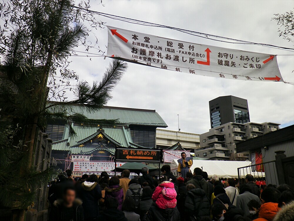 本殿の手前で後ろを振り返ってみました。深川不動堂に比べると、人の流れは穏やかです。