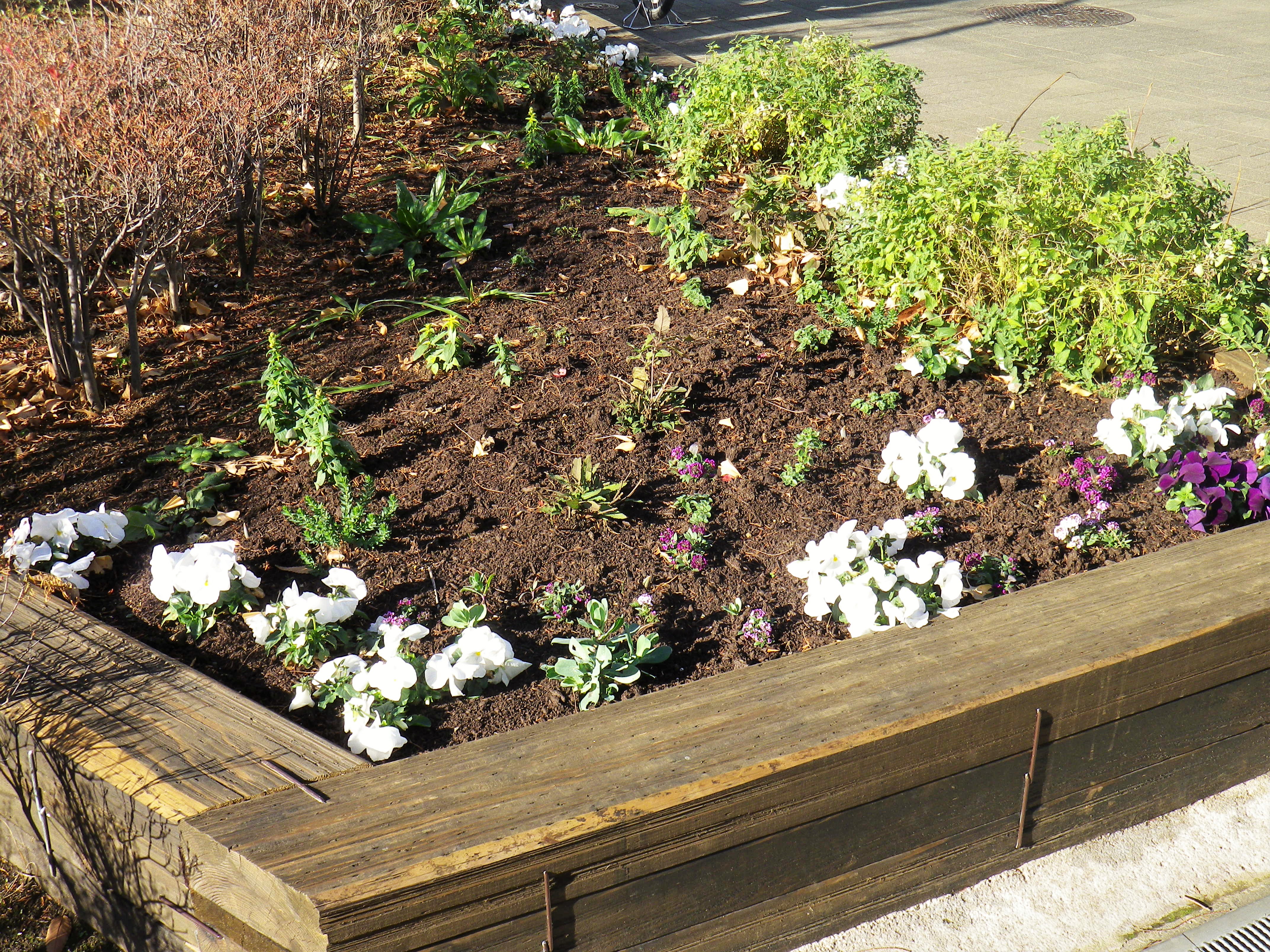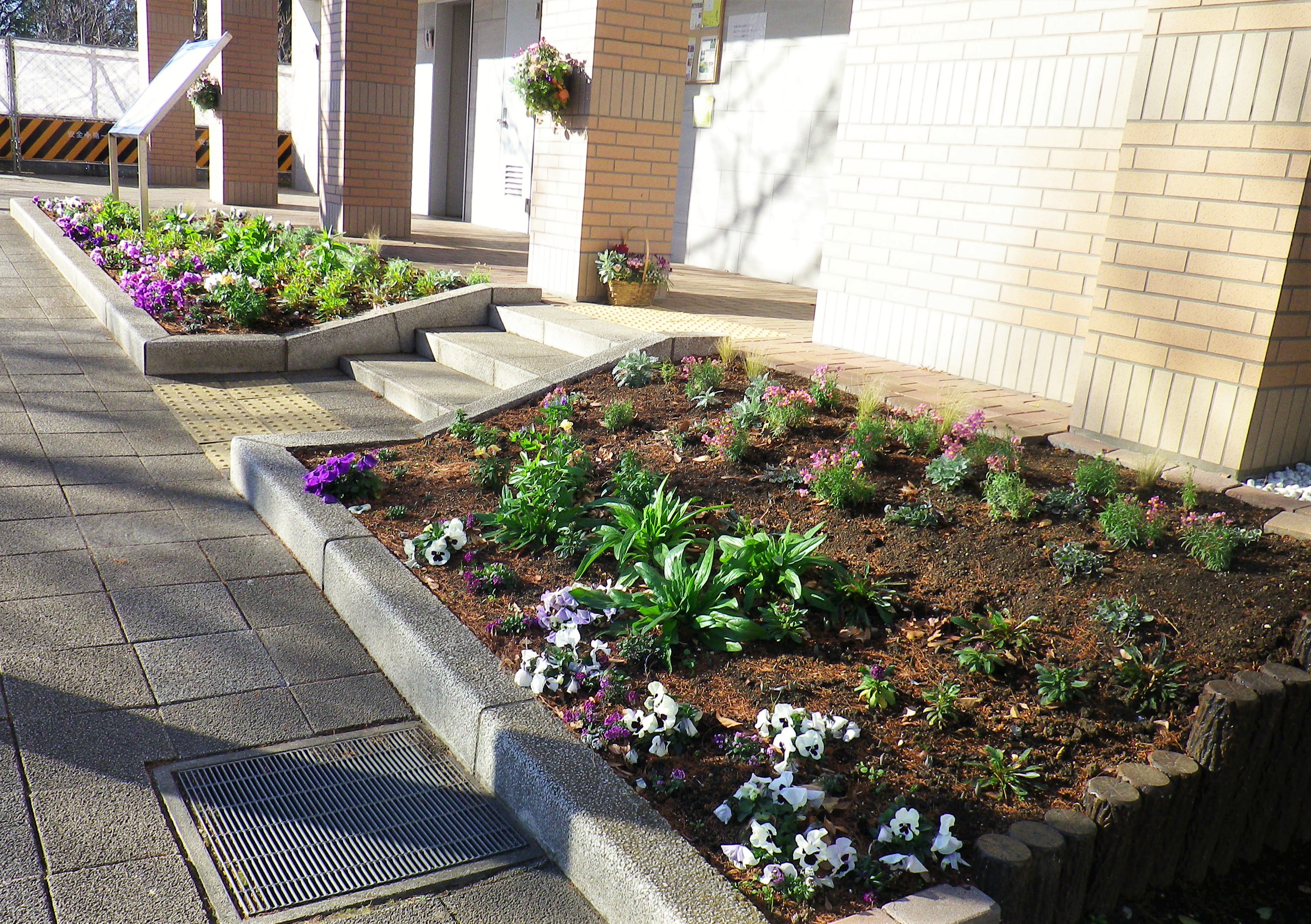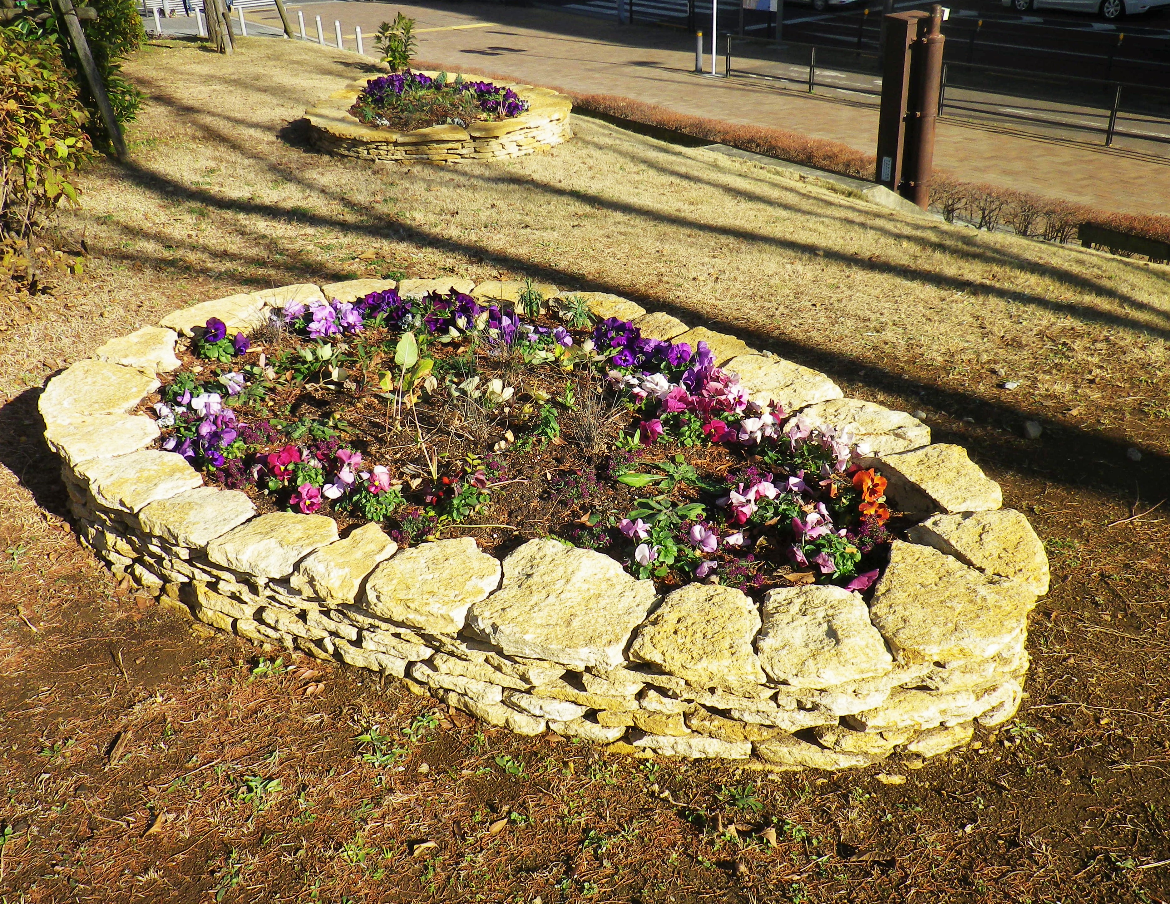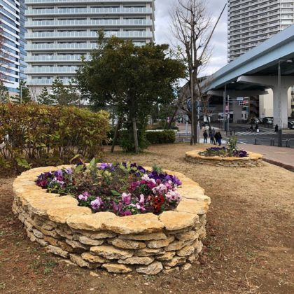 昨年11月に実施した「みんなで作る石積みガーデン」。こちらのガーデンにも豊かな花の彩りが添えられました。石積みガーデンは豊洲埠頭前交差点にある豊洲公園入口(深川消防署豊洲出張所並び)でご覧いただけます。