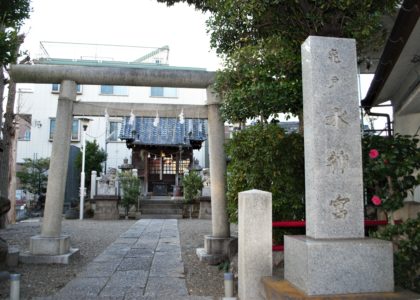 水神通りを進むと、次第にグレーの鳥居が見え始めます。10分程歩くと「亀戸水神宮」に到着しました。亀戸天神社や亀戸香取神社に比べると、境内は小さく、こじんまりとしていました。こちらの御祭神は弥都波能売神(ミズハノメノカミ)罔象女神とも表記されます。神名の「ミズハ」は田んぼに水を引く灌漑(かんがい)用の水路や生活用といった「水が走る」や「水が這う」という意味があり、「水つ早」として井戸や泉の出始めの意味もあります。また、ミズハノメは、水を司るだけでなく、水が生命の源であることから、「子授け」にもご神徳があるようです。