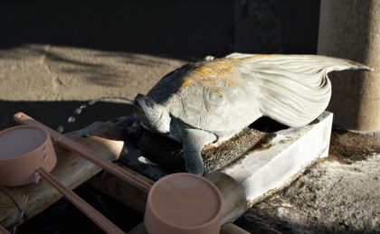 手水舎では、亀が水を吐き出しています。亀戸ならではですね。