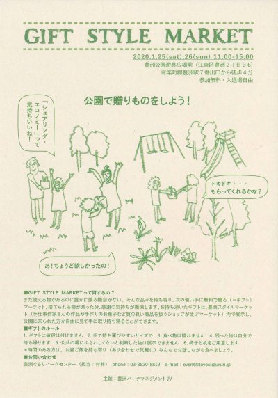 | お問い合わせ先 | 豊洲ぐるりパークセンター TEL:03‐3520‐8819 FAX:03‐3520‐8829 event@toyosugururi.jp |