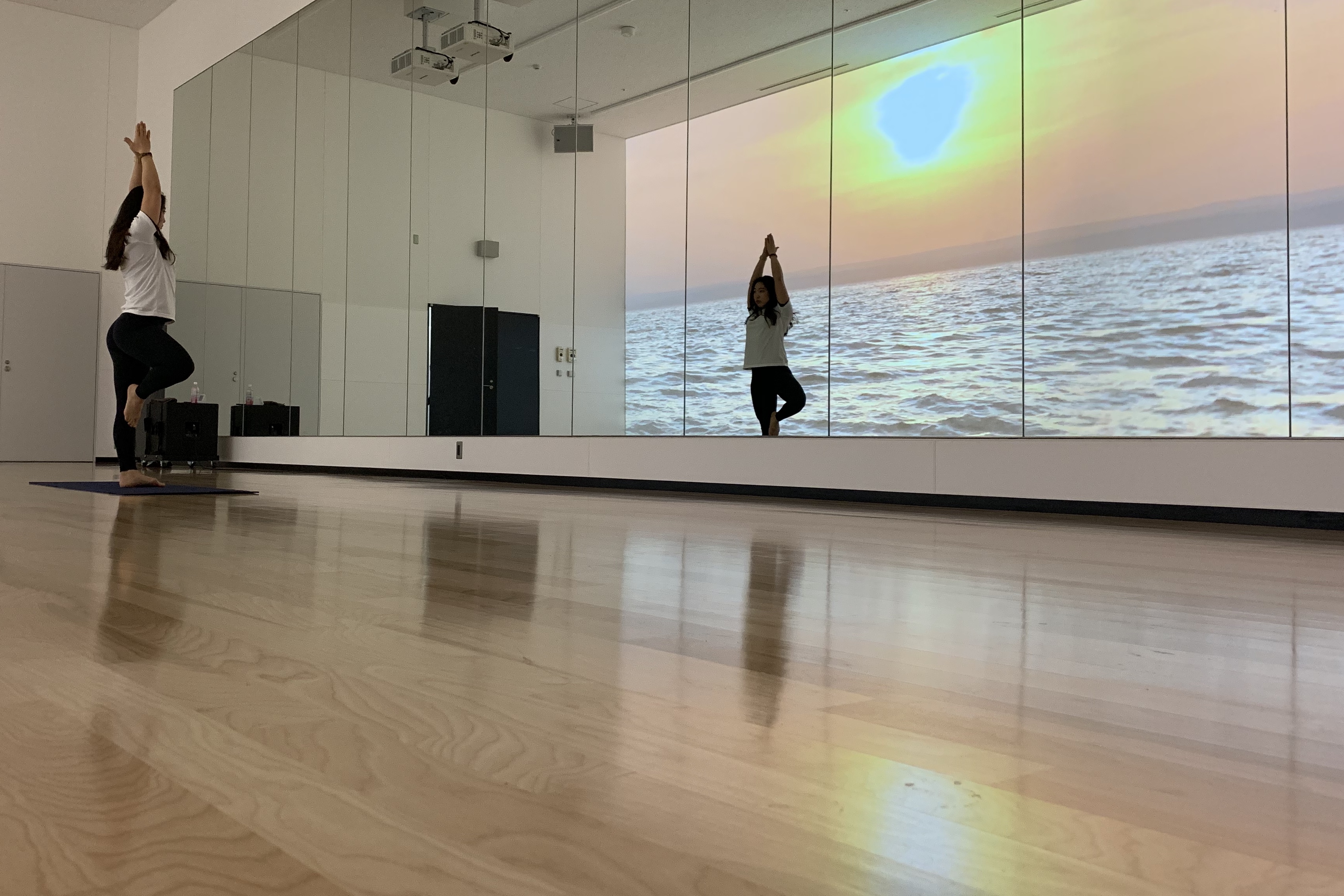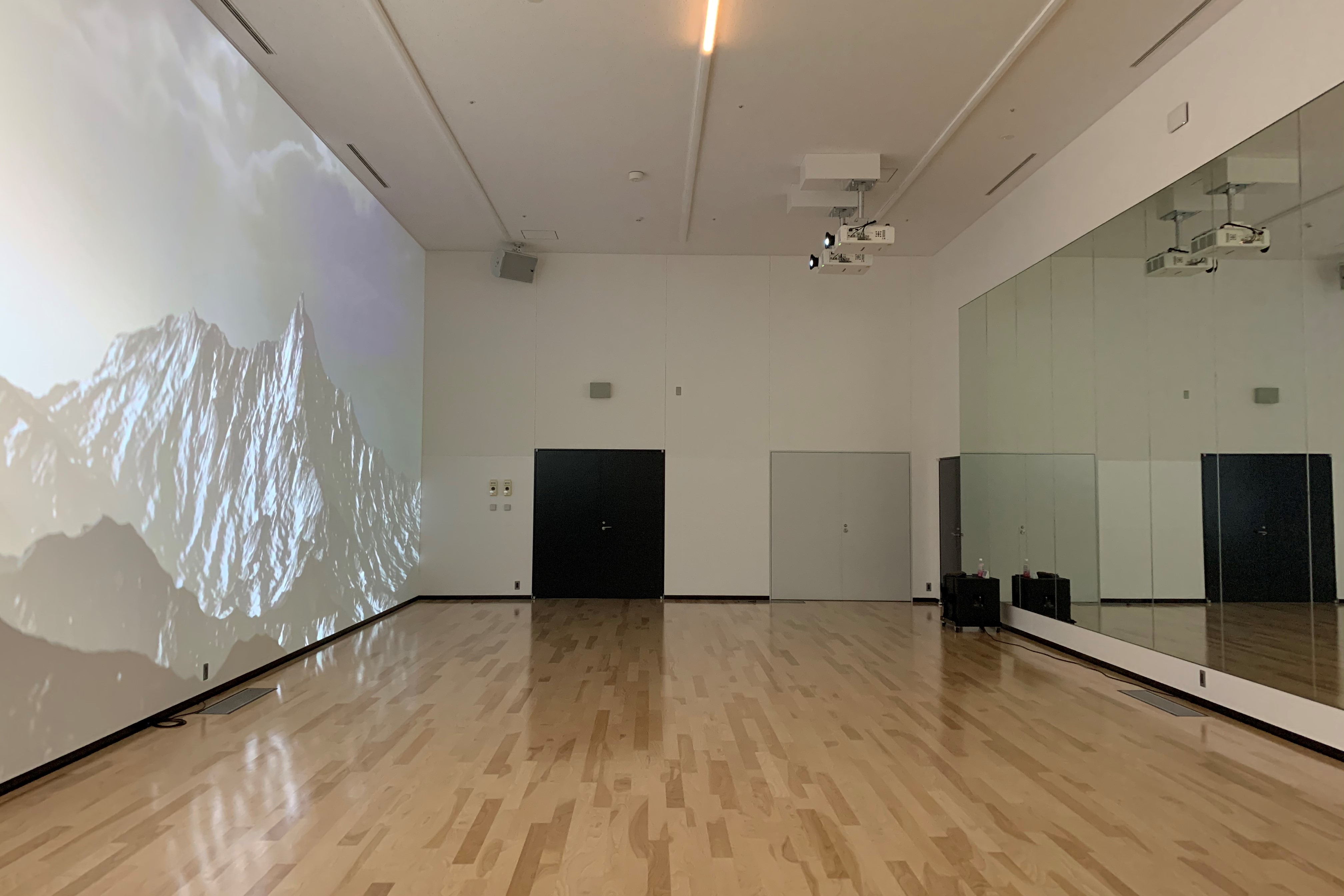 天井の高さはなんと5メートル。ヨガやダンスのレッスンルームにもなる大人気のスタジオです。その秘密は、壁に映されたプロジェクションマッピング。実は…
