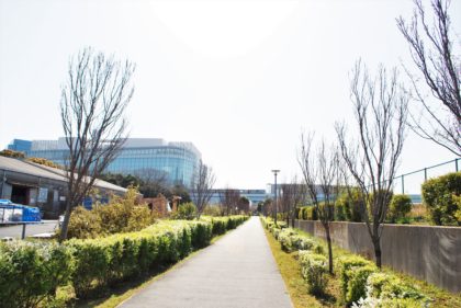 青海アーバンスポーツパークの先はシンボルプロムナード公園に繋がるのですが、現在は一部通行が制限されていて、立ち入ることができませんでした。このまま船の科学館まで進んでゆきます。