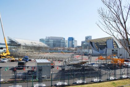 青海1丁目交差点に到着。正面ではオリパラ競技場の一つ「青海アーバンスポーツパーク」の建設が進んでいました。