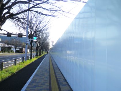 工事現場の周辺は、高い養生壁に囲まれ、中の様子が見えません。