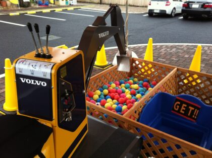 本物そっくりのショベルカー操作や、消防車のタイヤ交換ゲームで景品ゲット!
