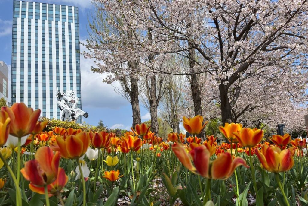 今年は桜の満開時期が少し遅めだったこともあり、お台場エリアでは桜とチューリップの共演が楽しめるという、なんとも贅沢な光景が広がっていました!