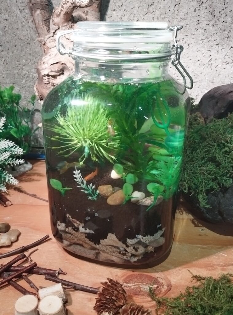 小さなビオトープボトル!メダカやマリモの飼育世界づくり
