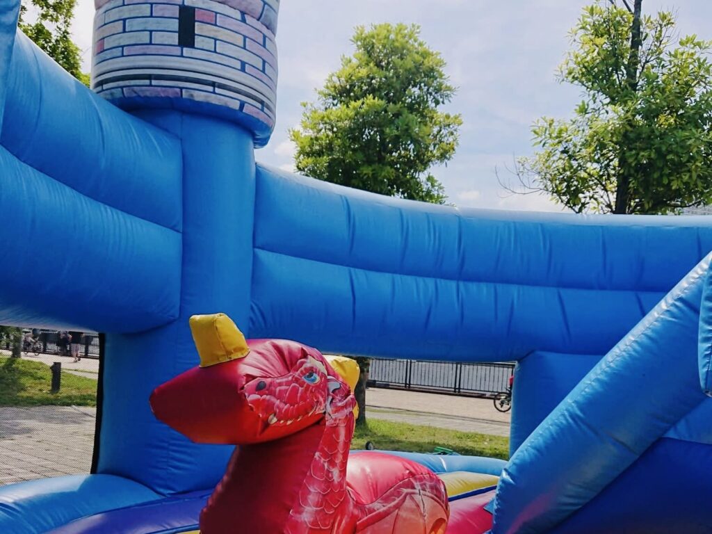 真っ青な空のようなビッグなお城が出現しました!中には青い滑り台もあり、お子様たちは“キャッキャ”とはしゃぎながら、巨大なお城を駆けずり回っておられました。