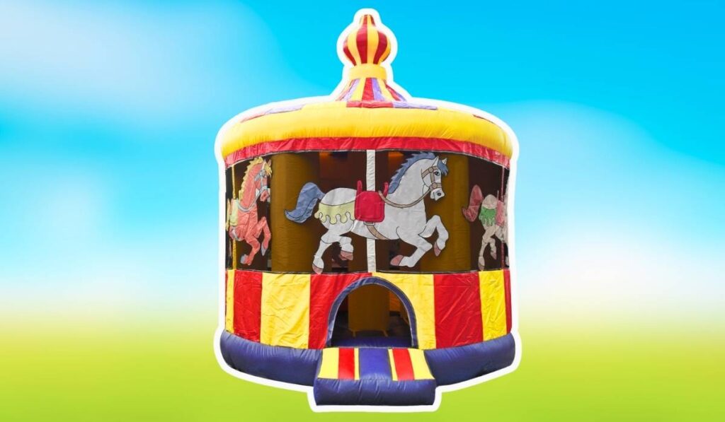 かわいいメリーゴーランドのエアー遊具でとんだり、はねたり、楽しく遊ぼう!
