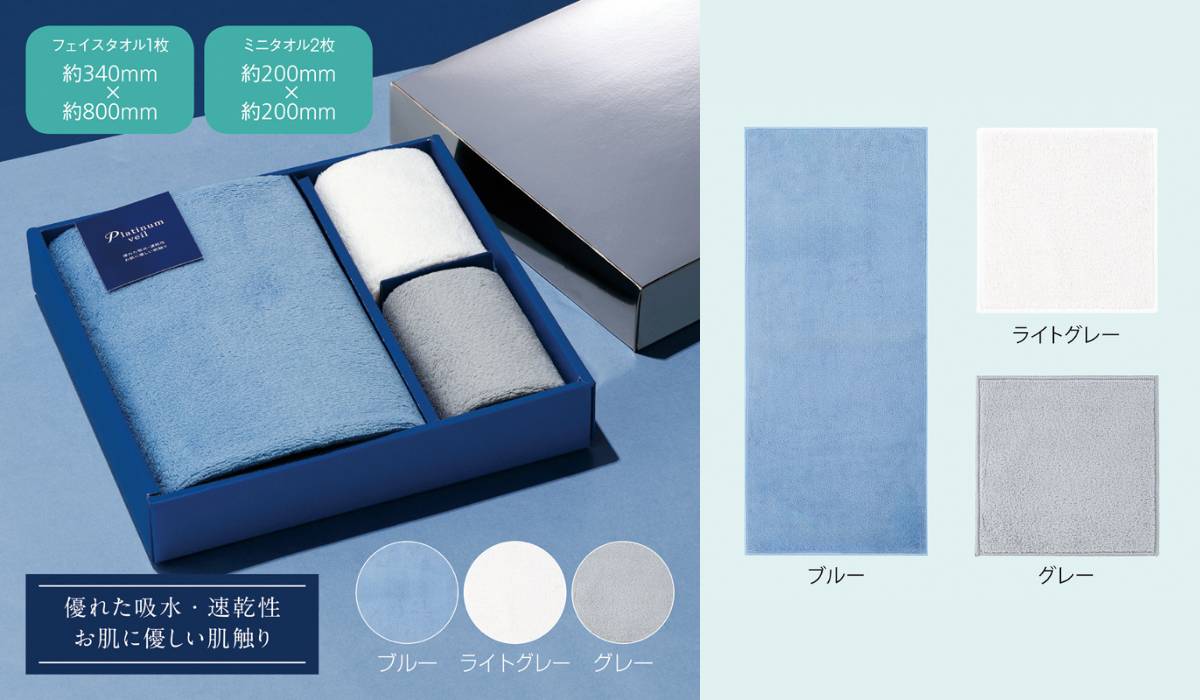 『プラチナヴェール フェイスタオル+ミニタオル2Pセット』もれなく