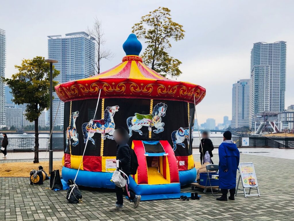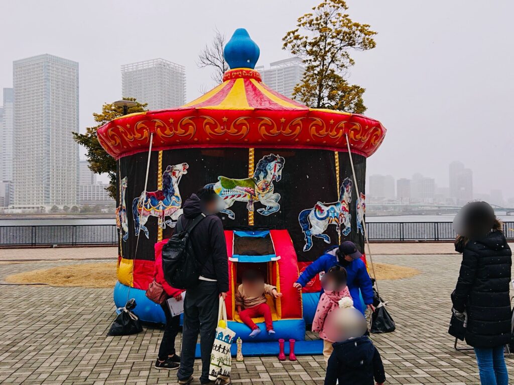 メリーゴーランドのような外観のふわふわの中では半袖になって遊んでおられる元気なお子さまも見られました。