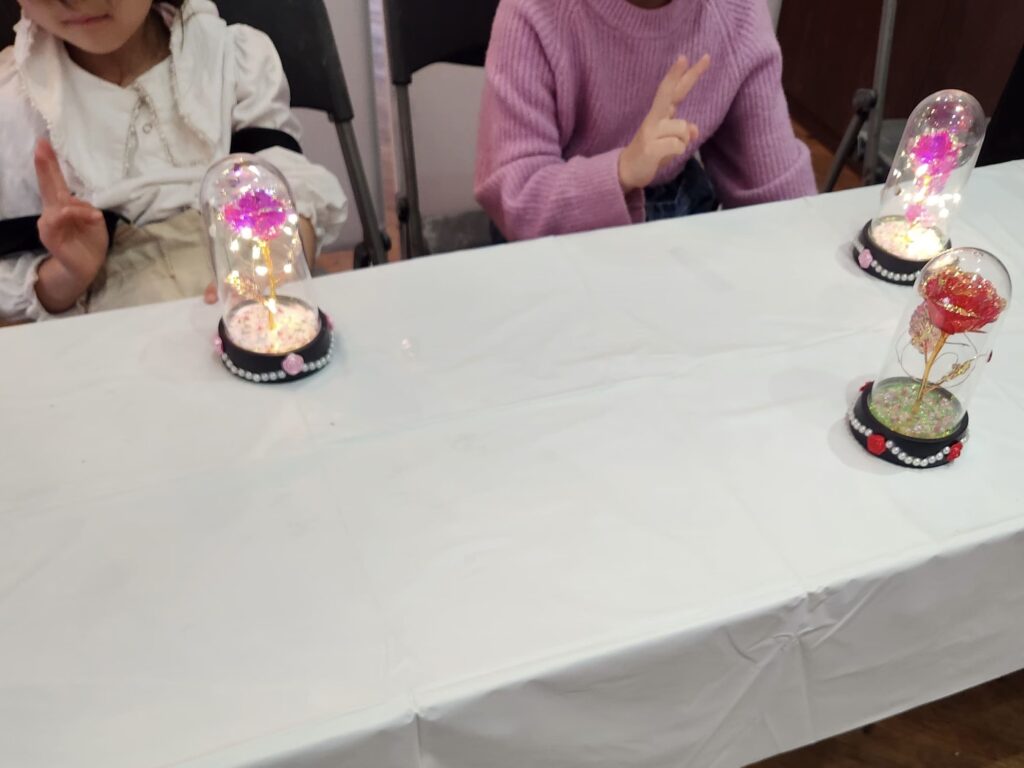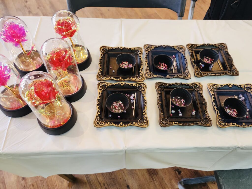 バレンタイン時期に相応しい、きらきらしたバラを更に自分好みにデコレーションできる。女の子心をくすぐるイベントでした。