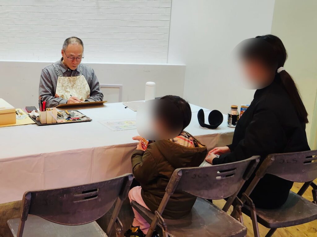 雨が止むと次から次へと参加ご希望のお客様のご来場が増え、可愛くそっくりに書いてもらった似顔絵に親御様も大変満足されているようでした。