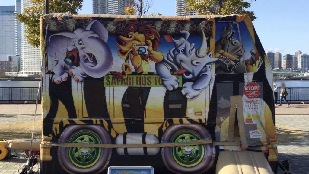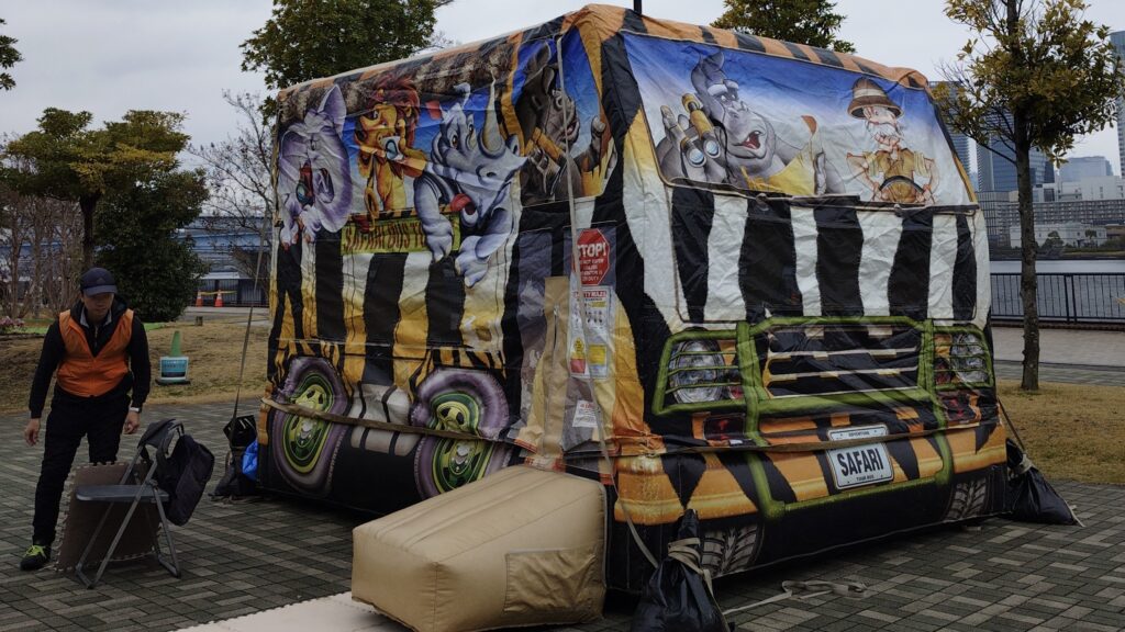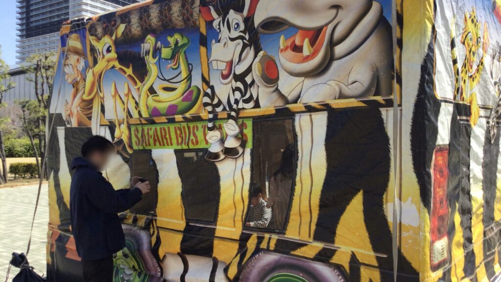 15時頃雨が止んだ海側の広場では『ふわふわサファリバス』が登場し