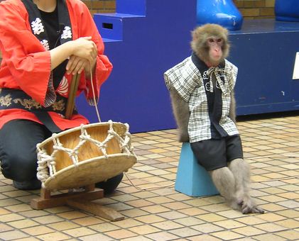 武蔵野音楽大学卒の猿回し師“まい先生”とお猿の金太郎が、歌ありピアノありの異色の猿回しをご披露します。