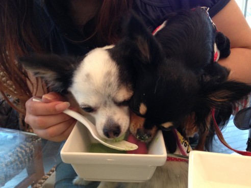 ワンちゃん用のベジタブルスムージーは美味しいみたいで一気に完食していました^^