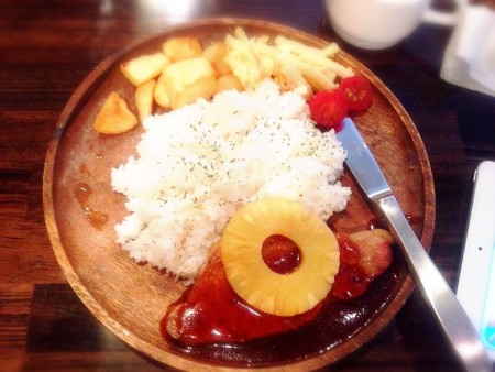 この日は看板メニューのハワイアンポークチョップを頼んでみましたが、大人の男性でも食べきれないほどボリューム満点でした。