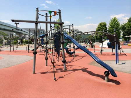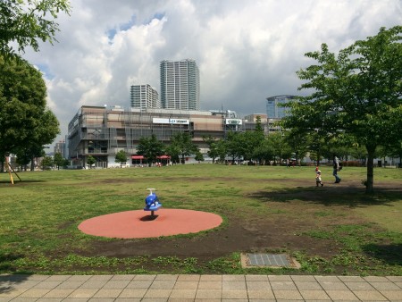 「赤ちゃんの駅」からしばらく歩くと、遊具が充実した豊洲公園が。