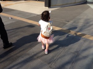 お手洗いも済み、ジュースでの一息も入れた娘は、ずんずん元気に帰路をゆきました。子連れのお出かけは、荷物も多く、子どもに振り回されたりもしますが、バリアフリーの施設があると、とっても心強いですね!!
