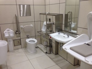 車いす対応トイレ、オストメイト対応トイレになっています。バリアフリーに力を入れているのがよく分かります。