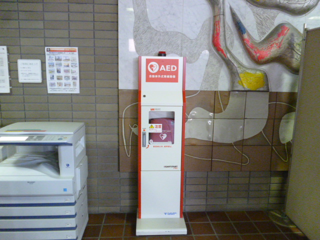 ▲ 文化センターに入ってすぐ、AEDが設置してあるのが見えます。