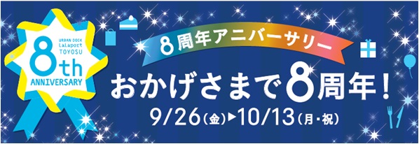 アーバンドック ららぽーと豊洲では、9月26日(金)から10月13日(月・祝)の間、8周年アニバーサリーフェアを開催。