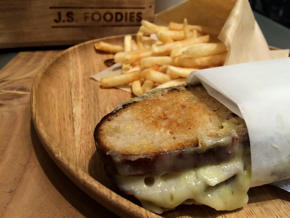 イギリスより直輸入のチーズを使ったサンドウィッチやラクレットなどが楽しめるとあったので、「グリルチーズサンド(880円)」に「ポテトトッピング(180円)」をセレクトしてみました。