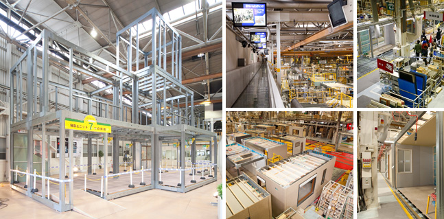 セキスイハイムは家づくりの80%を工場で行っています。工場見学会はその生産体制をじっくり見ることができるとあって非常に人気です。実際の生産ラインで、鉄骨の加工から品質検査まで、すべての工程を見学したり、映像やシミュレーション施設による体験型ショールームで様々な状況を実際に体験したり、また、加齢や介護に配慮された住まいや賃貸アパート・賃貸併用住宅、子どもが賢く育つ家などの展示棟を見学したりと、家づくりのイメージがより具体的にわく内容となっています。