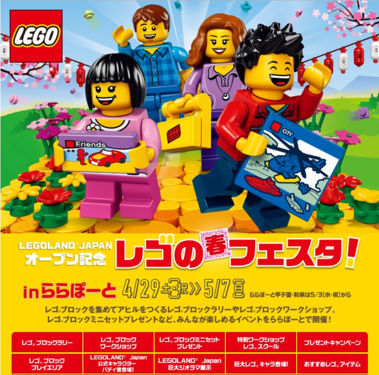 4月29日より「LEGOLAND JAPANオープン記念 レゴの春フェスタ」がアーバンドック ららぽーと豊洲で開催されます!ゴールデンウィークは豊洲へお越しくださいね!