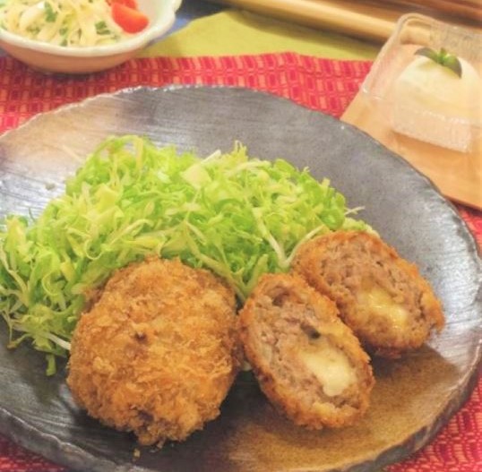 揚げたてが美味しい お肉屋さんのとろーりチーズメンチカツ