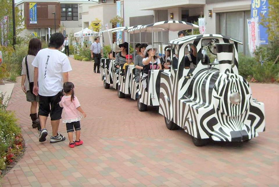 乗っても見てもわくわくする、ゼブラカラーのロードトレインが豊洲まちなみ公園に登場。