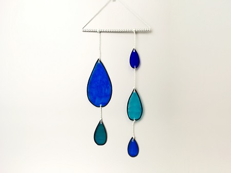 可愛らしいしずくの形のプラバンにペンで色を付け、ステンドグラスのように仕上げます。