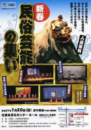 江東区文化センターホールでは2019年1月20日(日)、江東区内に伝えられてきた民俗芸能を一挙公開する「新春民俗芸能の集い」を開催します!