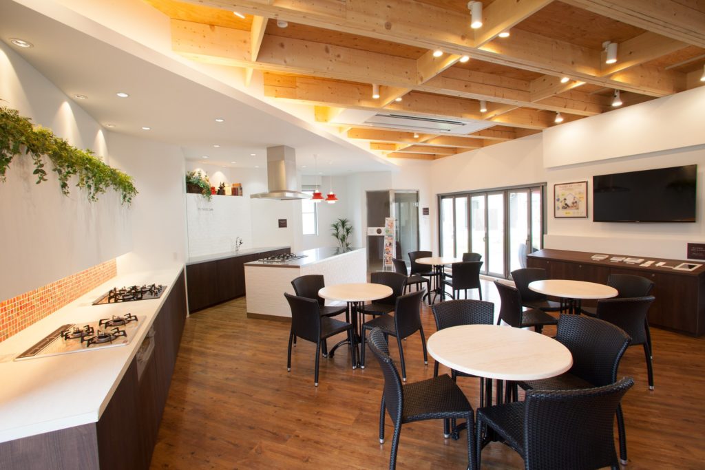 入口を入って正面には広々としたアイランドキッチン。週末のイベントでは、コンロやダッチオーブンを使ったクッキングや、実演・試食などが行われます。イベント情報をチェックしてくださいね♪