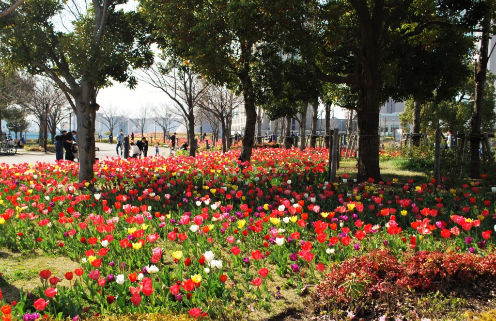 新型コロナウイルスの影響がパンデミックとなり、東京2020の開催が危ぶまれています。一部の報道では延期が決定的とも。その一方で各地で会場の工事は着々と進んでおり、この先の成り行きが心配です。このような暗いニュースとは裏腹にプロムナード公園ではチューリップが満開となっていました。これからソメイヨシノとの共演が見頃を迎え、青海エリアは彩り豊かな注目スポットになりそうです。週末に訪れてみてはいかがでしょうか。※撮影日は3月21日。